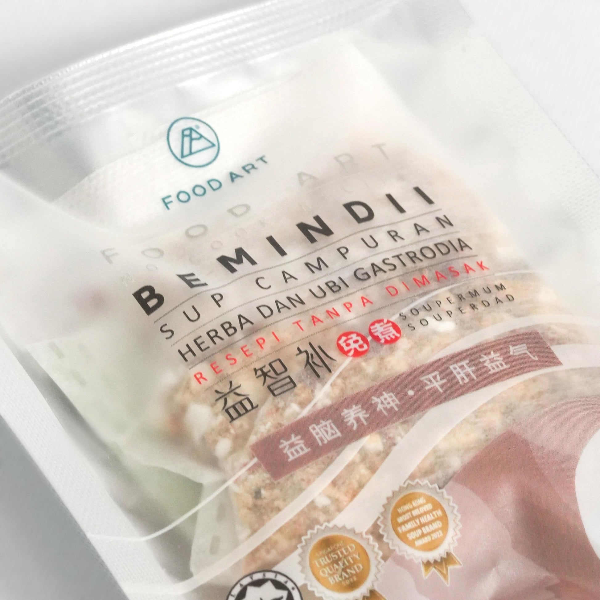 Bahan-bahan: Yu Zhu, Chinese Yam, Red Date*, Goji, Poria Cocos, Vege Seasoning, Codonopsis, Ligusticum Wallichii*, Gastrodia Tuber*, dan Dahurian Angelica Root.